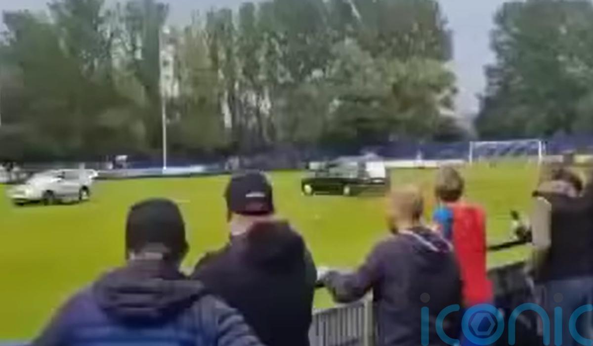 The friendly between non-league teams Gateshead and Dunston was called off on Friday at half-time after the hearse was driven on to the pitch at Dunston’s UTS Stadium, Tyne and Wear, along with a Subaru, shortly before 8.20pm.