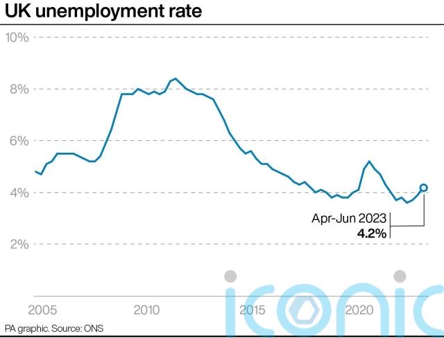 The Office for National Statistics (ONS) said the unemployment rate hit 4.2% during the quarter, up 0.3 percentage points from the previous three-month period.