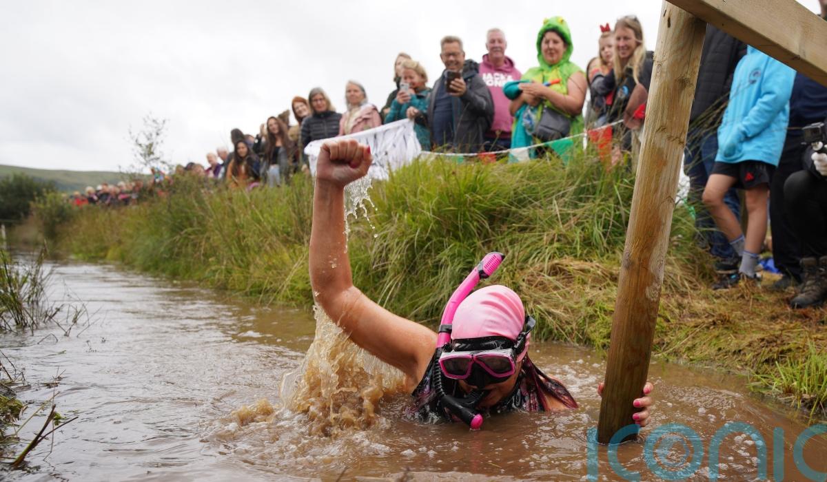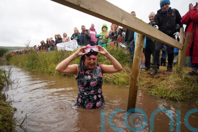 The charity fundraising event has been run since the 1980s and attracts hundreds to Llanwrtyd Wells, where hardy swimmers take to the murky waters of the Waen Rhydd peat bog for a bracing splash along a 60m course.