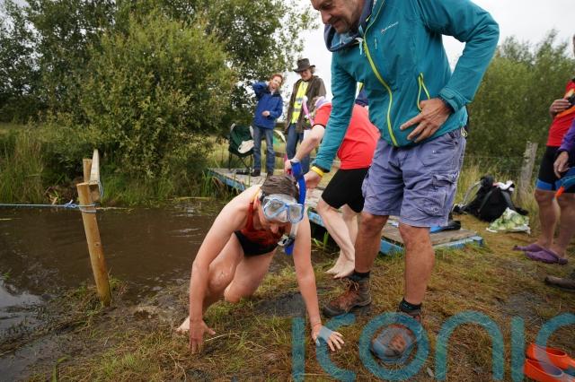 There was very little visibility on the course but plenty for spectators to see during Sunday’s Rude Health World Bog Snorkelling Championships in Wales.