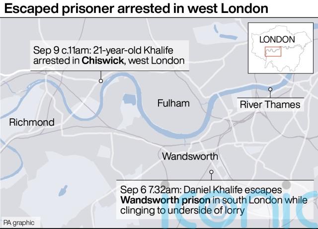 Metropolitan Police counter-terrorism boss Commander Dominic Murphy told reporters the 21-year-old former soldier, who escaped HMP Wandsworth four days ago, was arrested on suspicion of being unlawfully at large and being an escaped prisoner.
