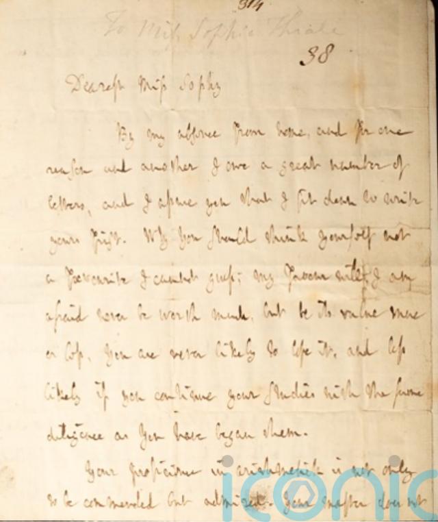 The letter was written to 12-year-old Sophia Thrale, the daughter of British author Hester Lynch Thrale.