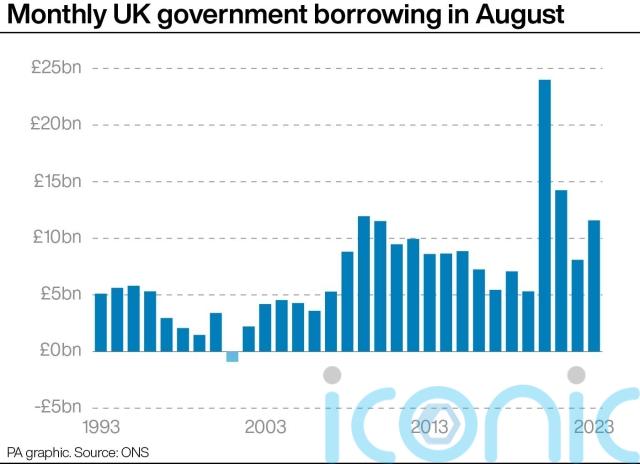 The Office for National Statistics (ONS) said public sector net borrowing stood at £11.6 billion last month – £3.5 billion more than a year earlier and the fourth highest August borrowing since records began.