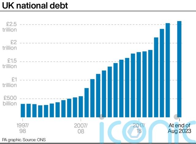 The ONS said net debt stood at £2.59 trillion at the end of August, equal to around 98.8% of the UK’s gross domestic product (GDP) and 2.3 percentage points higher than a year ago.