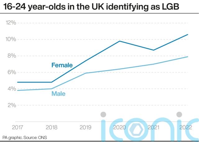Some 10.6% of women aged 16 to 24 identified as LGB in 2022, up from 4.8% in 2017, according to estimates from the Office for National Statistics (ONS).