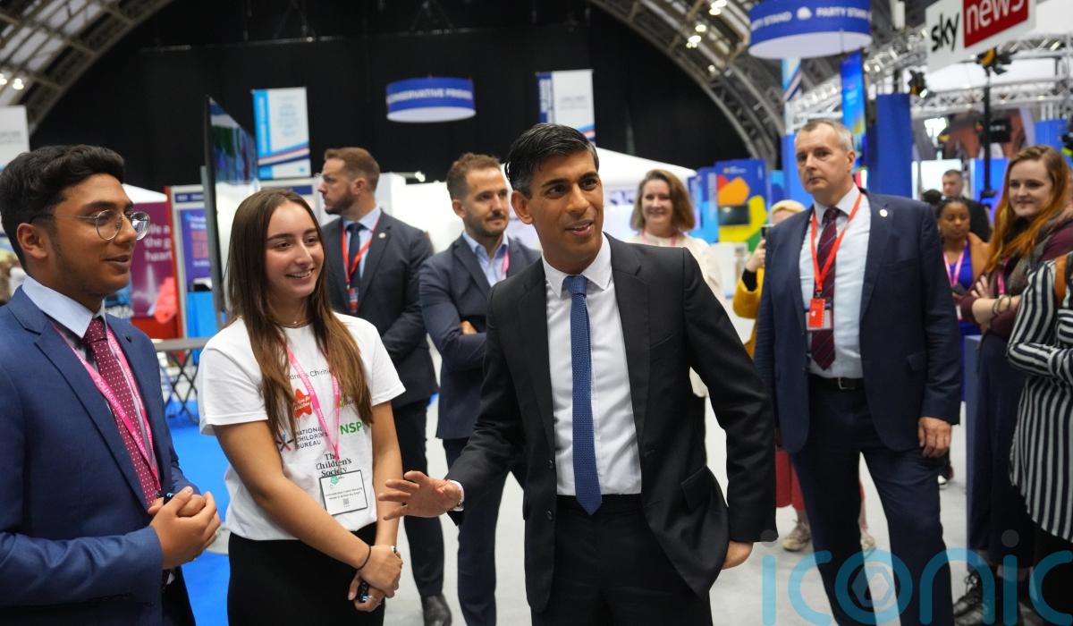 Elsewhere on the conference floor, Mr Sunak shared anecdotes about his family’s puppy Nova as he met representatives from charity Guide Dogs.