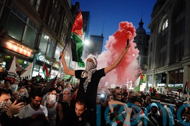 Fireworks were let off, flares were lit and chants of “Israel is a terrorist state”, “Free Palestine” and “Allahu akbar” rang out.