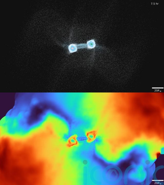 Co-lead author Dr Simon Lock, from University of Bristol, said: “Our calculations and computer models indicate the temperature and size of the glowing material, as well as the amount of time the glow has lasted, is consistent with the collision of two ice giant exoplanets.”