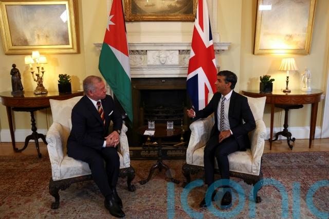 King Abdullah II of Jordan was welcomed to Downing Street on Sunday evening, as the ruler embarked on a diplomatic tour of Europe to rally international support to stop the war.