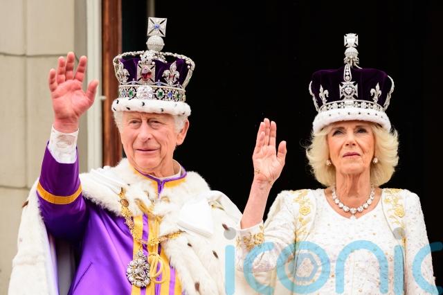 The couple, in lavish robes and wearing their crowns, took to the palace balcony to see the crowds, joined by the Prince and Princess of Wales and their children, Prince George, Princess Charlotte and Prince Louis, and the coronation pages and Ladies in Attendance.