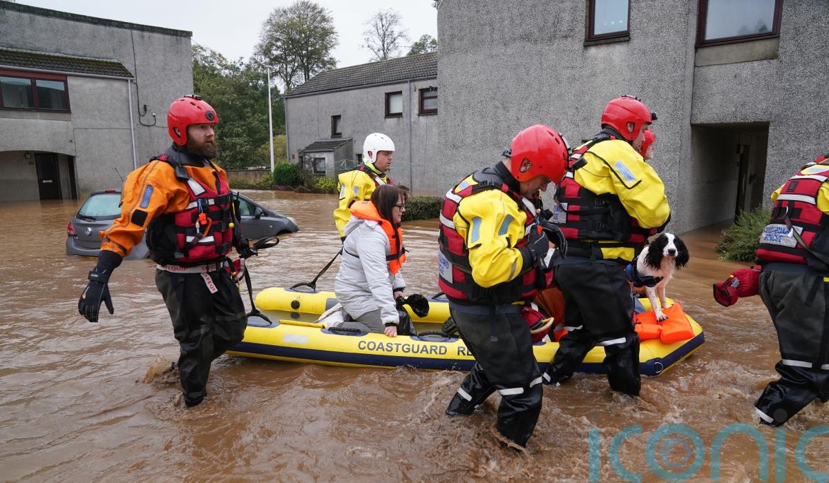 More than 75 people were in rescue centres in Angus, east Scotland, while Angus Council said people in more than 60 homes in Brechin, who refused previous evacuation attempts, required rescue.