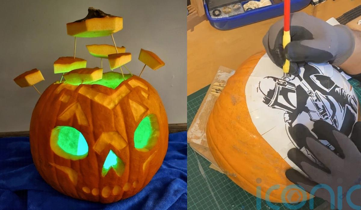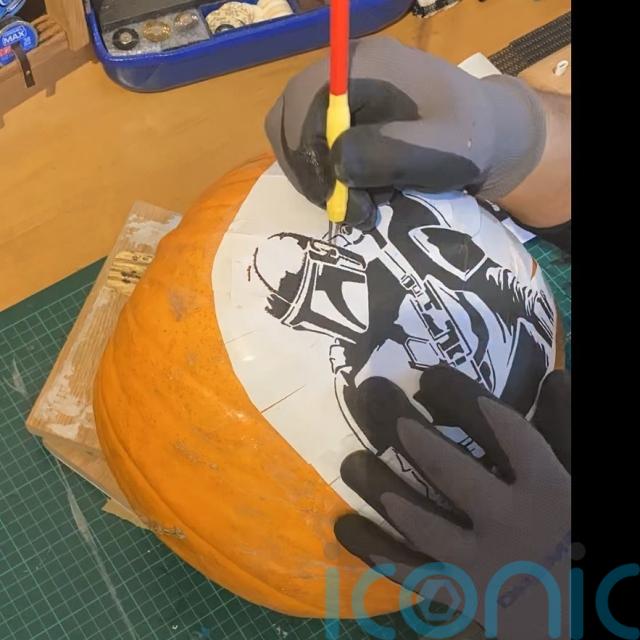 Mark Peach, who works as a kitchen designer for B&Q and is based in Chorley, near Preston, carved an image of Din Djarin from the Star Wars series The Mandalorian, on to the skin of a pumpkin.