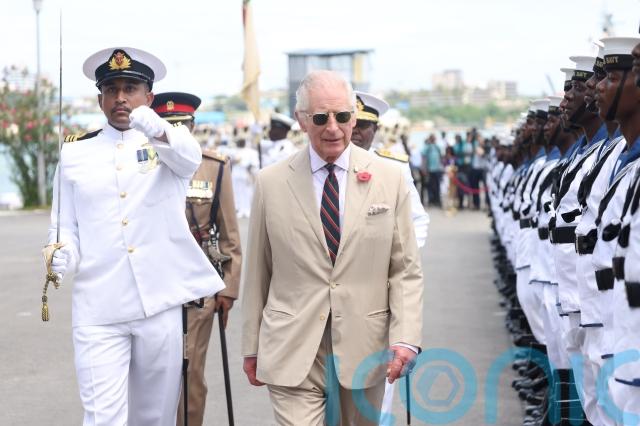 The King and Queen watched as 18 Kenyan Marines in inflatable boats landed on a beach at Mtongwe Naval Base near Mombasa and laid down a barrage of fire – blanks only – from their M4 carbines after coming under attack from a defensive position on the beach.