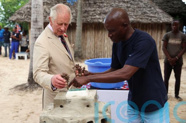 At the Kuruwitu Conservation Area, Charles learnt about the process of coral gardening, which involves fixing coral “plugs” into structures made from concrete and sand.
