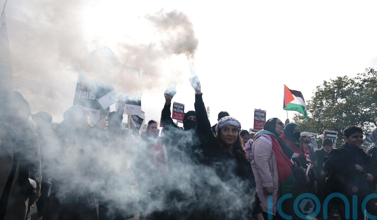 Others appear to show the controversial slogan “from the river to the sea” being shouted with demonstrators replying “Palestine will be free”.