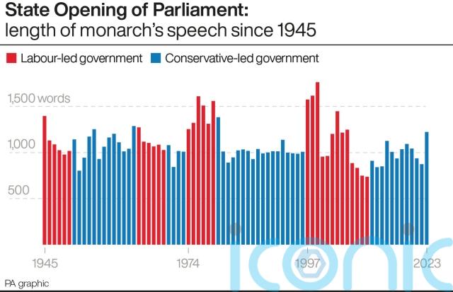 It was 349 words longer than the speech at the previous state opening in May 2022, which was delivered by Charles – then Prince of Wales – on behalf of his mother, the late Queen, who did not attend on doctors’ advice.