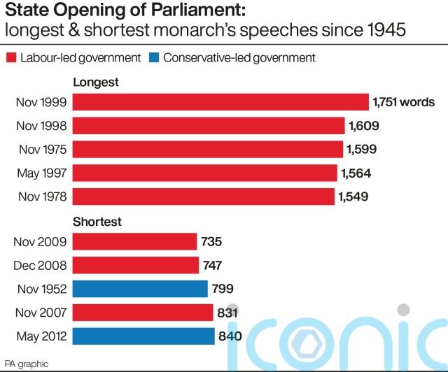 The longest monarchs’ speeches since 1945 have all been under Labour prime ministers, with Tony Blair’s 1997-2001 government accounting for three of the top five.