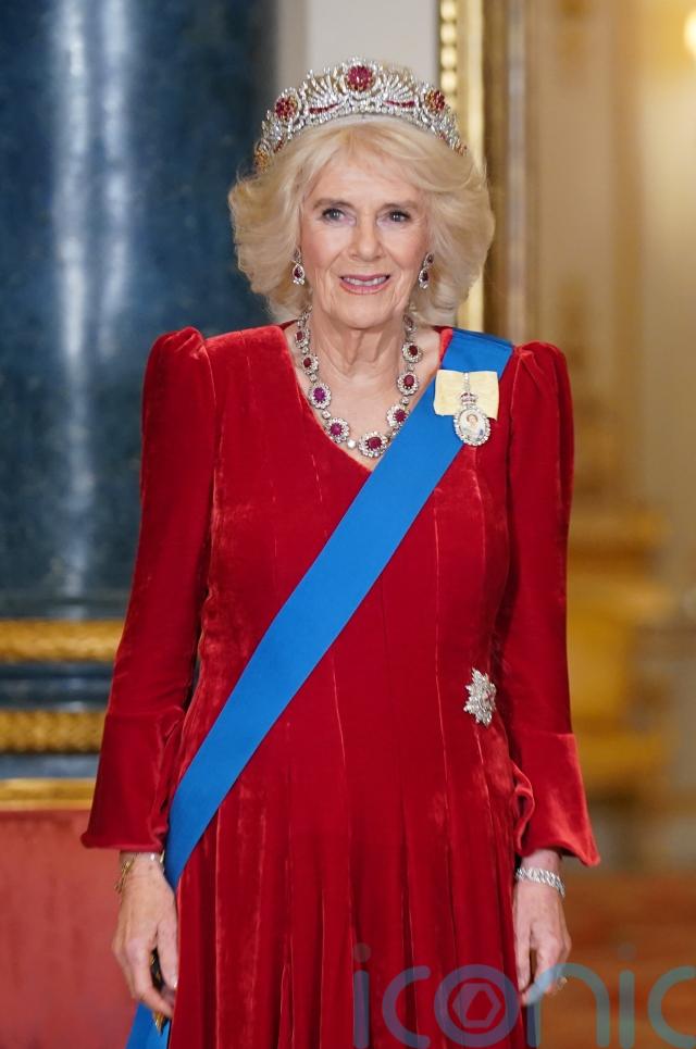 Camilla’s ruby and diamond Burmese tiara was worn by the late Queen at the state banquet for then-US president Donald Trump in 2019.