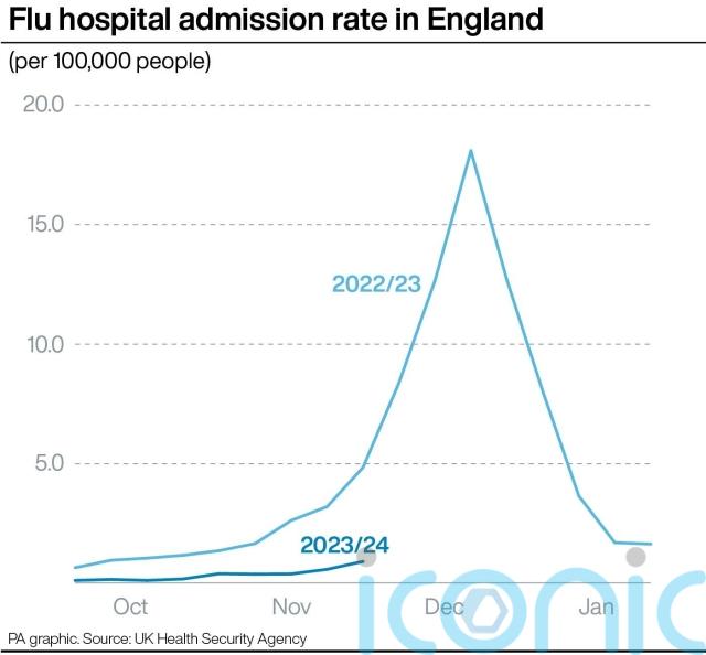 They show the number of people in hospital with flu has also risen week-on-week but remains well below levels seen at this stage in 2022.