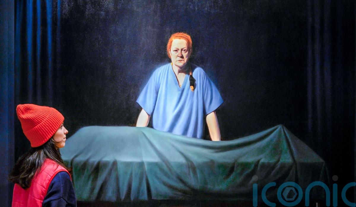 The painting by Ken Currie, titled Unknown Man, shows Prof Black in surgical robes standing behind the covered remains of a body.