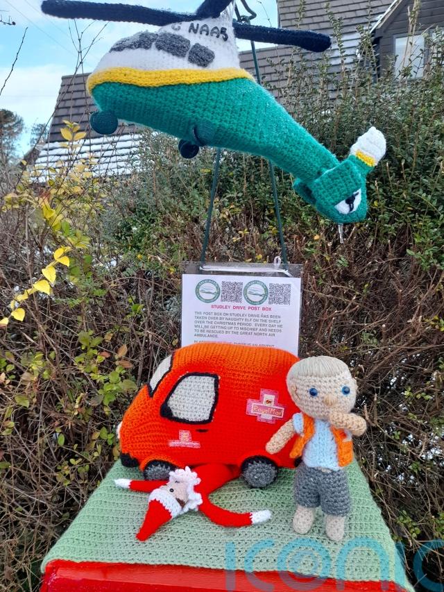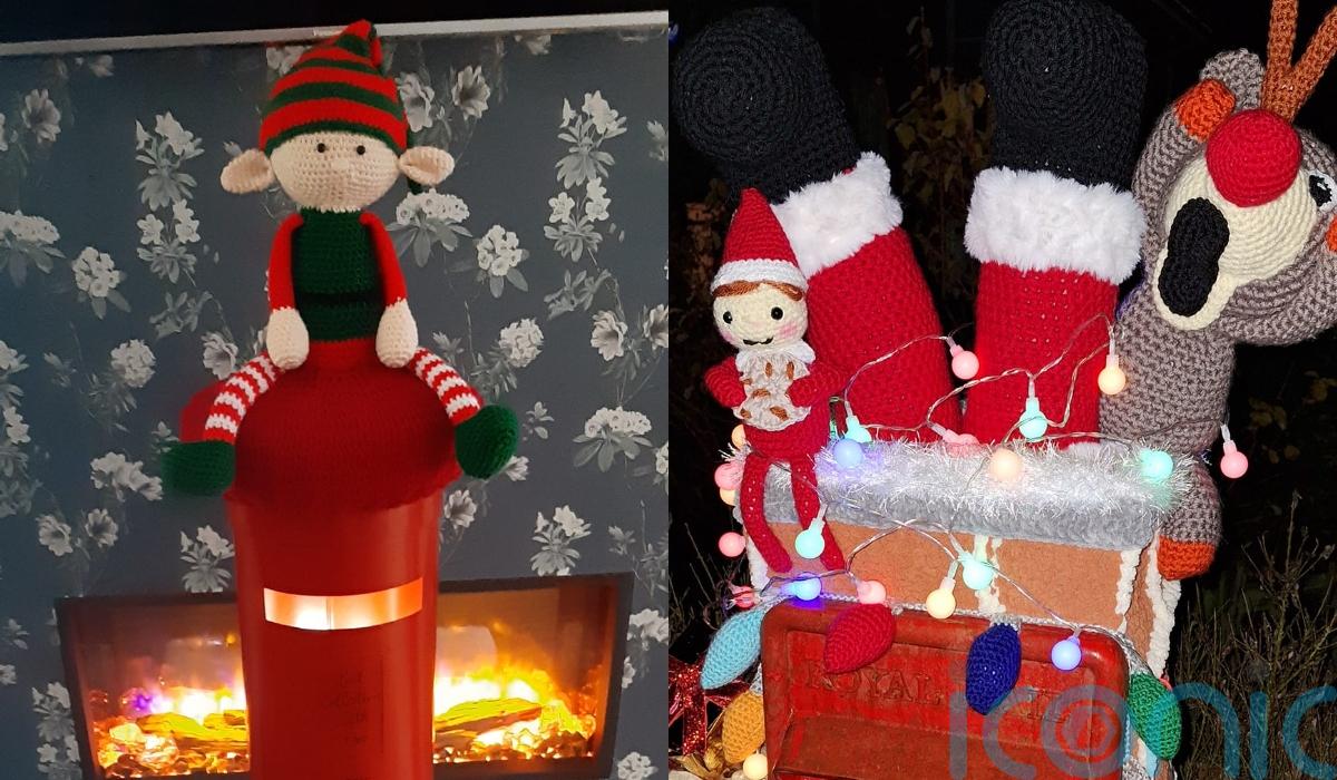 Crocheters across the country have adorned postboxes with “cheeky” elves and a Santa stuck in a chimney as they embrace the festive spirit.