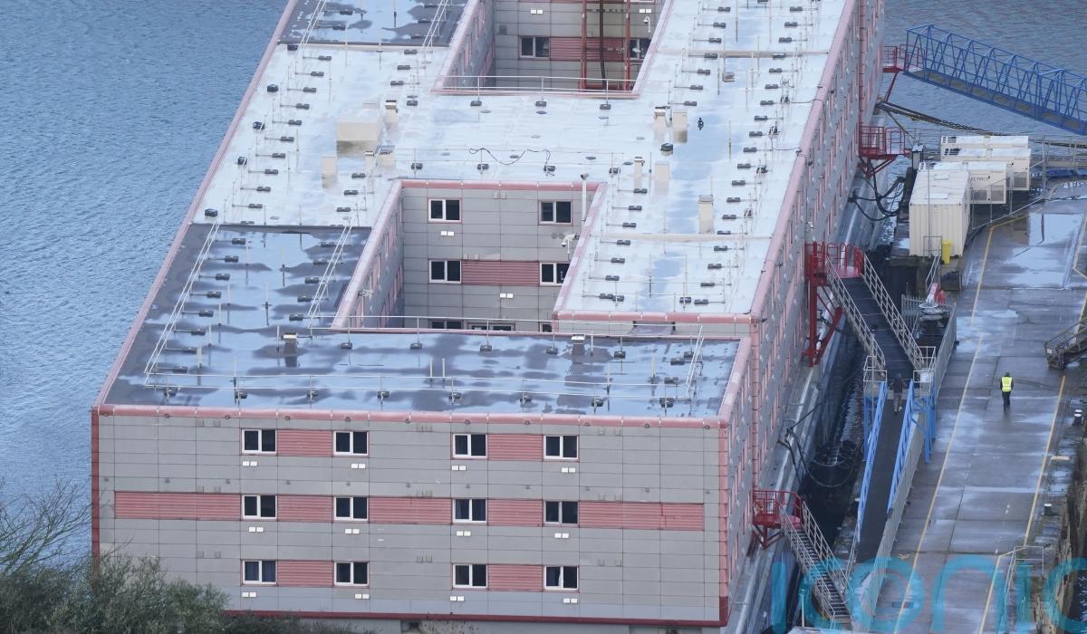 The vessel being used to house asylum seekers is moored in Portland Port, Dorset.