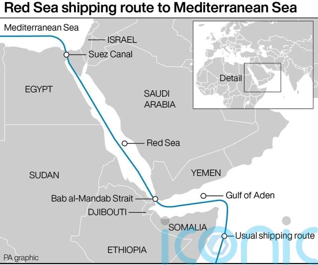 The Houthi group is understood to be targeting ships in the Bab el-Mandeb Strait between Yemen and Djibouti, in the Horn of Africa, adding to instability in the Middle East caused by the Israel-Hamas war.