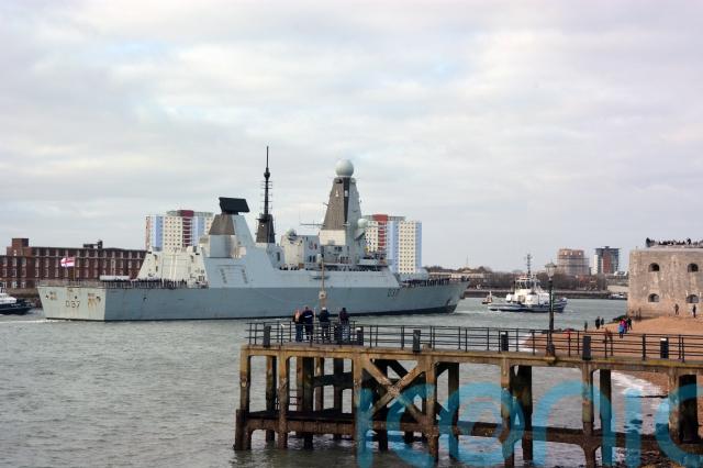 The Type 45 destroyer sailed into Portsmouth Naval Base through blustery winds as more than 700 friends and families waited on the jetty to be reunited.