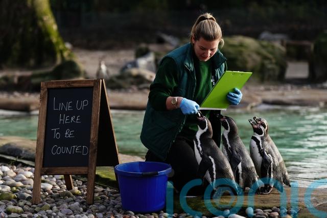 Galapagos tortoises were not too much of a flight risk while the counting was under way but the zookeeper tasked with totting up the penguins had a much trickier task with the agile and slippery crowd pleasers, whether they were waddling or taking a deep dive.