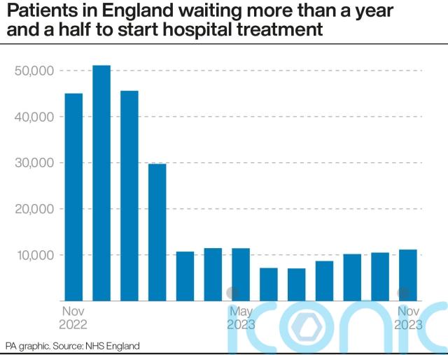 But 11,168 people in England were waiting more than 18 months to start routine hospital treatment at the end of November, up from 10,506 at the end of October.