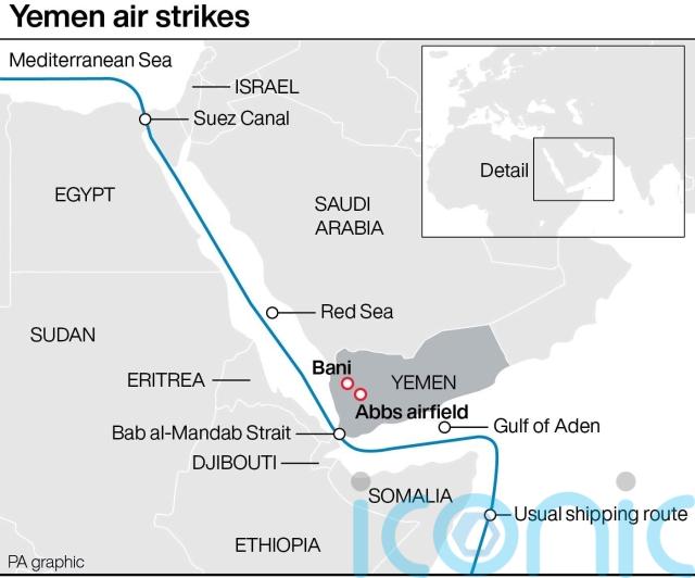 Prime Minister Rishi Sunak insisted Britain and the US acted “in self-defence” and that allies would not hesitate to ensure the safety of commercial shipping.