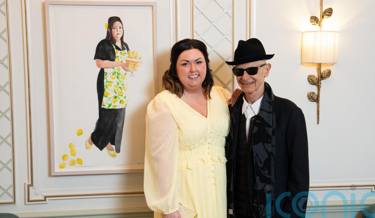 British artist David Remfry has unveiled a portrait of Platinum Pudding creator Jemma Melvin, showing the baker with her winning lemon Swiss roll and amaretti trifle.