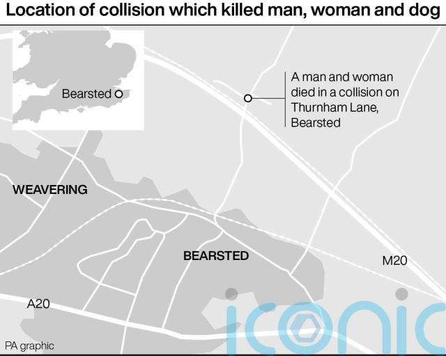 A man, a woman and a dog have been killed in a collision with a BMW X5 in a village in Kent.