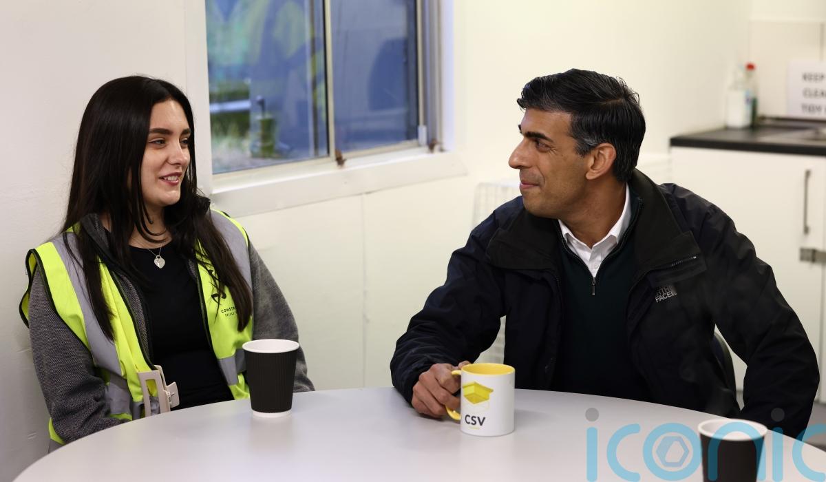 Mr Sunak was visiting the Construction Skills Village (CSV), in Scarborough, North Yorkshire, where he chatted to apprentices over a cup of tea after trying his hand at plastering in one of the workshops and before moving on to the electricians’ section.