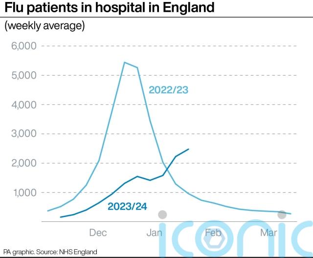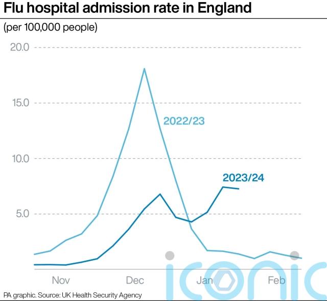 Separate figures published on Thursday by the UK Health Security Agency (UKHSA) indicate the rate of hospital admissions for flu patients stood at 7.3 per 100,000 people in the week to February 4, broadly unchanged on 7.4 per 100,000 in the previous week.