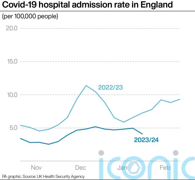 The rate of Covid-19 hospital admissions has fallen week-on-week from 5.0 per 100,000 to 4.1 and remains below levels seen last winter.