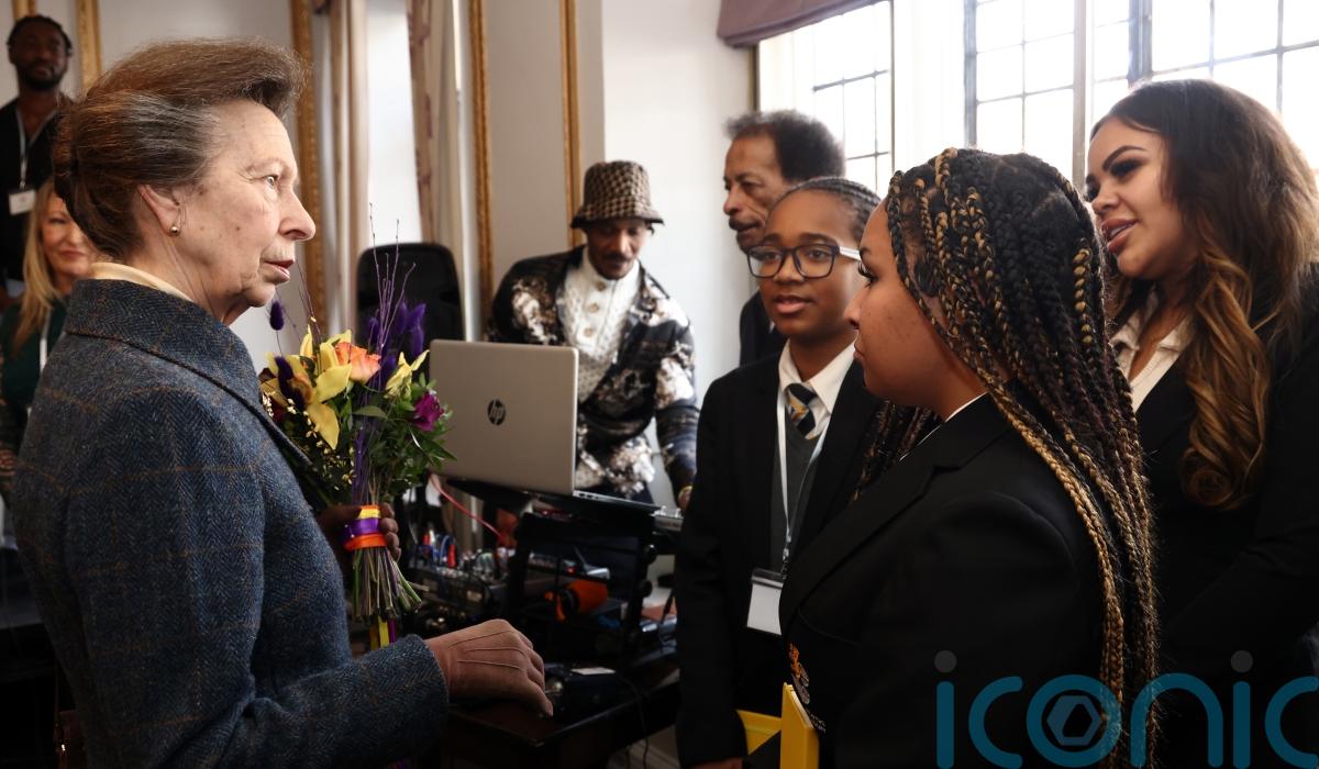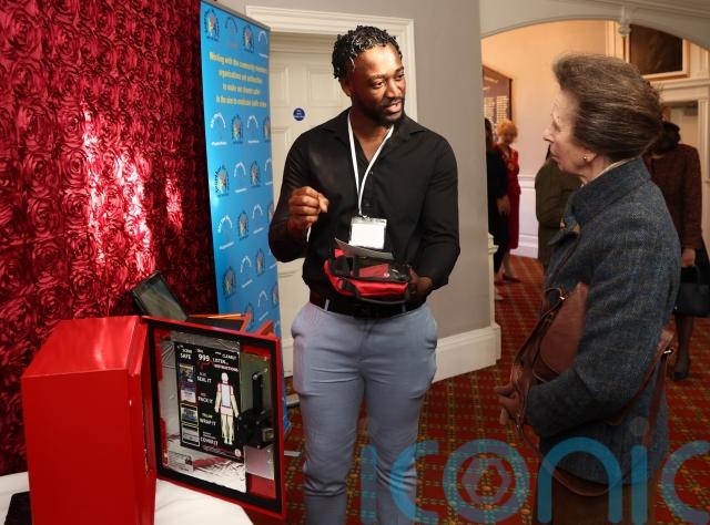The Princess Royal was shown a knife amnesty bin as she visited a group that works to combat stabbings in Wellingborough.