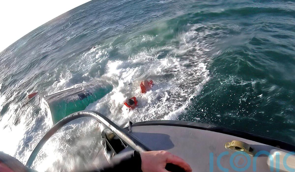 It sank in a matter of minutes, forcing the two remaining people on the fishing vessel into the water and they swam to the lifeboat and were pulled to safety by its crew.