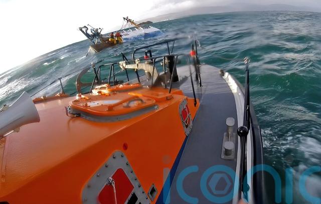 When the lifeboat arrived, they discovered two members of the crew on a life-raft while two others had remained on board in a bid to stem the flow of water coming in.