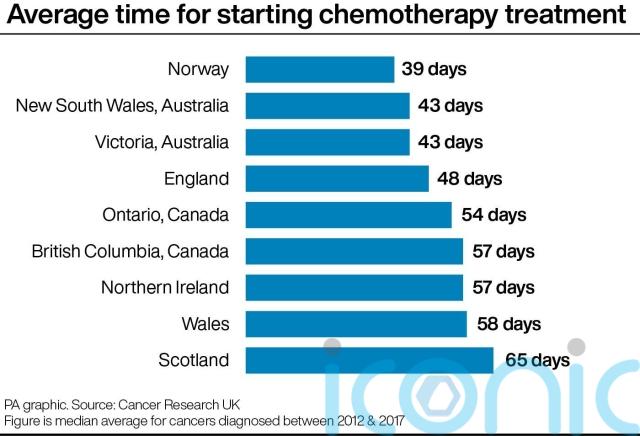 Waiting times for chemotherapy in Wales were also long at 58 days compared with 48 days in England, 43 days in Australia and just 39 days in Norway. However, Scotland was higher at 65 days.