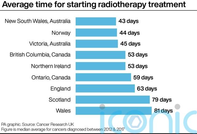Patients in Wales faced the longest waiting times to start treatment at an average of 81 days for radiotherapy compared with 79 days in Scotland, 63 days in England and just 44 in Norway.