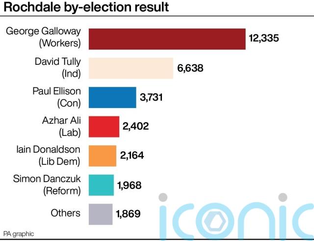 A Labour spokesperson said: “We deeply regret that the Labour party was unable to field a candidate in this by-election and apologise to the people of Rochdale. George Galloway only won because Labour did not stand.