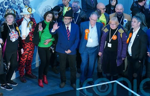 His victory speech was interrupted by a heckler accusing him of being a “climate change denier” before she was drowned out by shouts of “Gall-o-way! Gall-o-way” from his supporters, and confetti was thrown at him