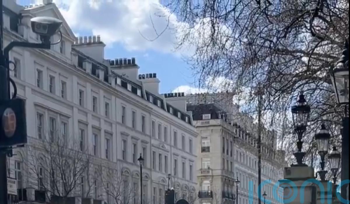 Videos on social media show firefighters putting out flames while onlookers described hearing an “explosion” on Buckingham Gate.