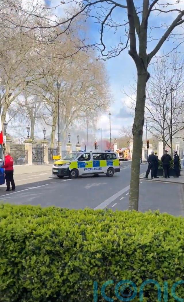 Firefighters from Lambeth Fire Station were called to reports of a fire on Buckingham Gate at 12.44pm and the road was closed.