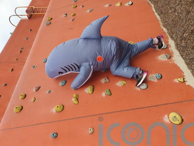 Engineer Georgina Box will be attempting to beat a time of 5:30:00 to achieve the fastest marathon in a full-body inflatable costume (female), dressed as a shark.