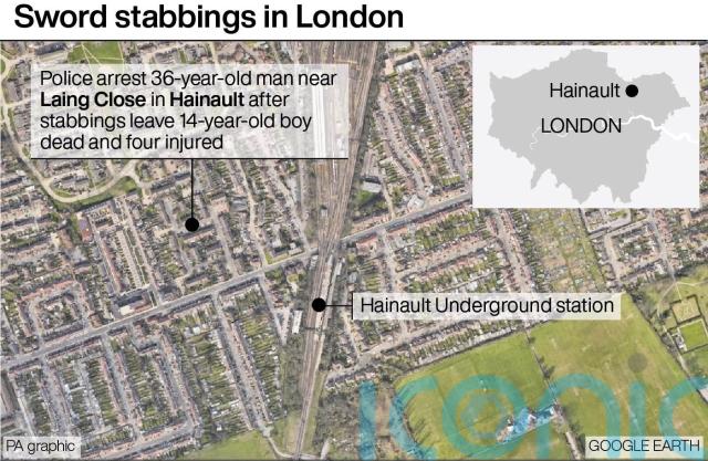 A 14-year-old boy has died following multiple stabbings in east London as a sword-wielding suspect remains in custody after being tasered and arrested on suspicion of murder.