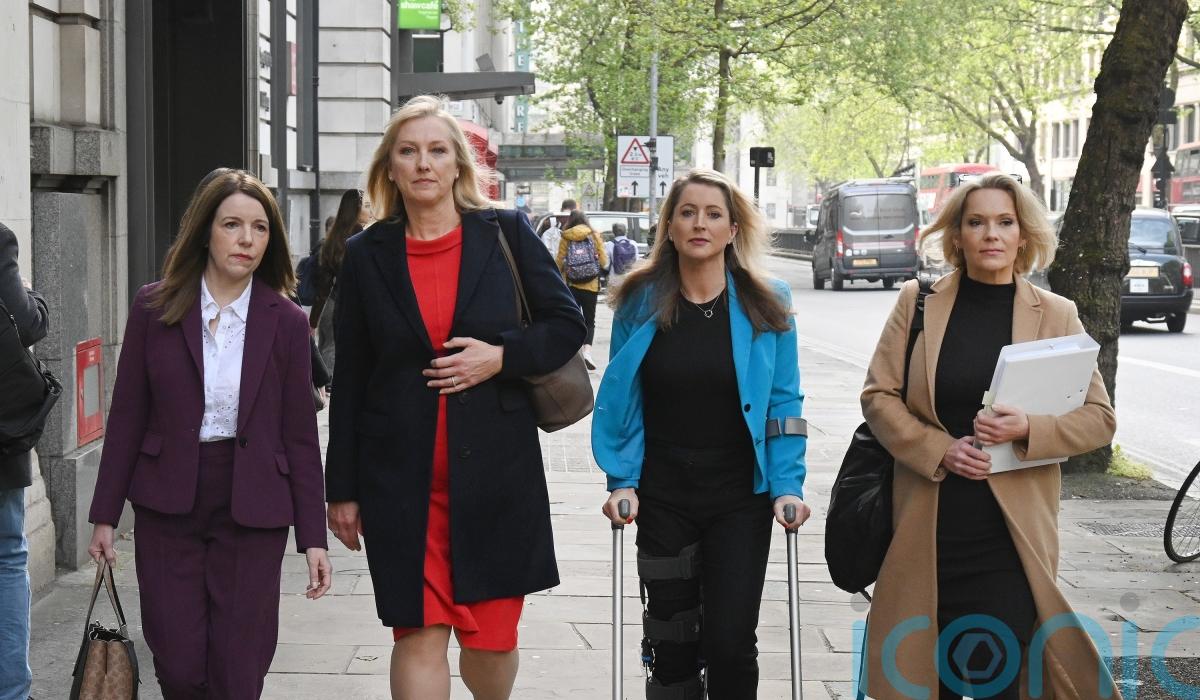She arrived at the Central London Employment Tribunal for a preliminary hearing on Wednesday flanked by BBC presenting colleagues Karin Giannone, Kasia Madera and Annita McVeigh.