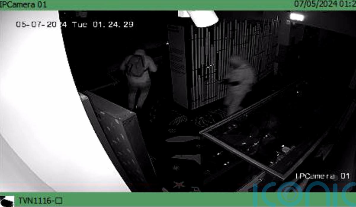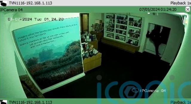 Images show two people in hooded tops climbing through a window at Ely Museum in Cambridgeshire in the early hours of Tuesday.