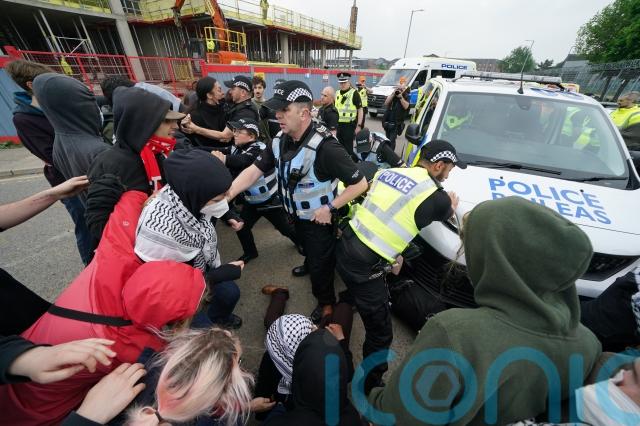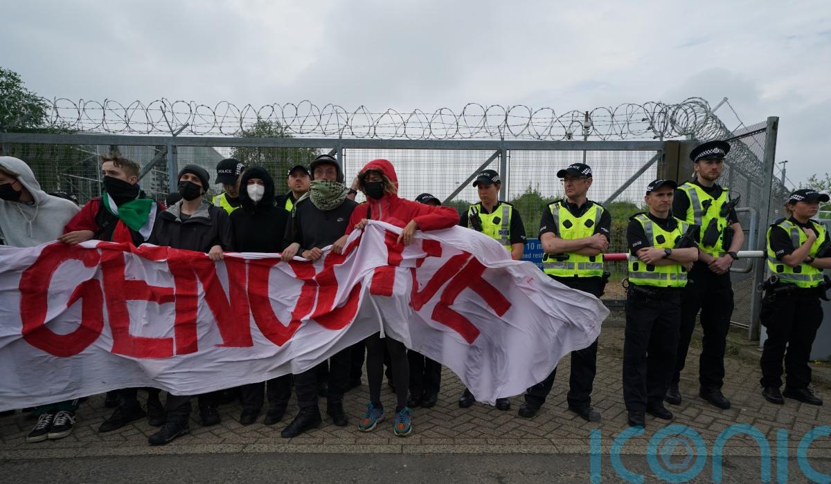 Pro-Palestinian protesters have blockaded a defence and security company in an effort to disrupt the supply of arms to Israel as they demand a ceasefire in Gaza.